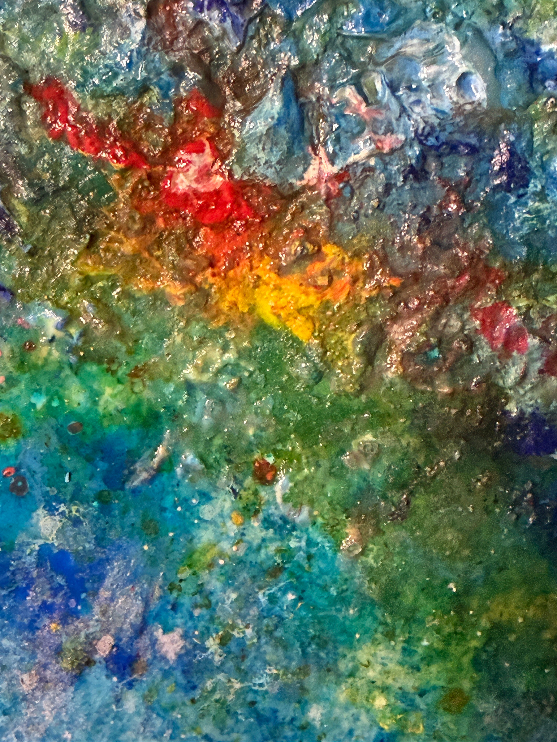 Vibrant and full of life, this painting radiates the energy of nature in its most luminous, summer form. The rich texture of the paint and the bold interplay of colors — from golden yellows to deep greens — create a composition pulsating with light and optimism. It is a painterly celebration of life, movement, and renewal. The work captivates the viewer and brings a sense of joy and harmony into any interior